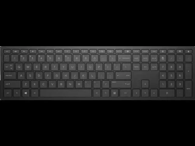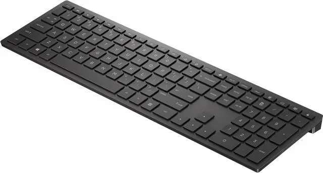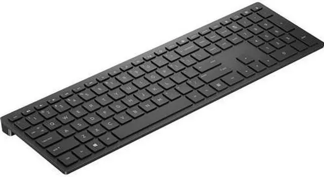 Type on a keyboard that doesnt need wires with the Pavilion Wireless Keyboard 600 from HP. This Windows-compatible keyboard uses a wireless 2.4 GHz RF connection to communicate with your computer. The keyboard features a dedicated numeric keypad, a series of multimedia keys, a set of full-sized arrow keys, and a slim design. A nano receiver that plugs into an available USB Type-A port on your system is included, along with a pair of AAA batteries.