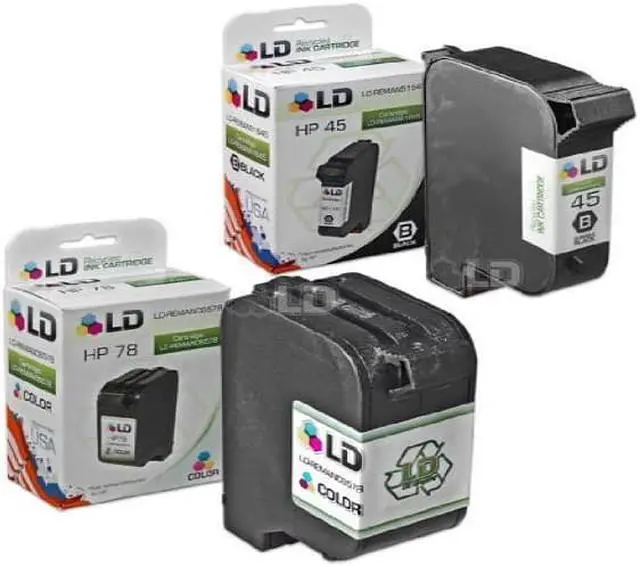 Save and print even more when you shop with LD Products! This offer includes the following remanufactured replacements: (1) 51645A / HP 45 Black and (1) C6578D / HP 78 Color ink cartridges. Each cartridge has been thoroughly cleaned along with the print-head nozzles. Following the cleaning process, we refill the cartridges with a professionally manufactured pigment-based ink formula for archival print life and color stability. After carefully inspecting the shell for leakage and monitoring the electrical circuitry for efficiency, we put the cartridge through a final print test to be certain it is worthy of our 100% satisfaction and lifetime guarantee. Compatible with Color Copier 180, Color Copier 190, Color Copier 280, Color Copier 290, DeskJet 1220c-ps, DeskJet 1220cse, DeskJet 1220cxi, DeskJet 6122, DeskJet 6127, DeskJet 930, DeskJet 9300, DeskJet 930C, DeskJet 932, DeskJet 932C, DeskJet 935, DeskJet 935C, DeskJet 950, DeskJet 950C, DeskJet 952, DeskJet 952C, DeskJet 960, DeskJet 960Cse, DeskJet 960Cxi, DeskJet 970, DeskJet 970C, DeskJet 970Cse, DeskJet 970Cxi, DeskJet 990C, DeskJet 990cm, DeskJet 990Cse, DeskJet 990cxi, DeskJet 995, DeskJet 995C, DeskJet 995ck, Fax 1220, Fax 1220xi, OfficeJet G55, OfficeJet G55xi, OfficeJet G85, OfficeJet G85xi, OfficeJet G95, OfficeJet K60, OfficeJet K60xi, OfficeJet K80, OfficeJet K80xi, PhotoSmart 1000, PhotoSmart 1100, PhotoSmart 1100xi, PhotoSmart 1115, PhotoSmart 1115cvr, PhotoSmart 1215, PhotoSmart 1215vm, PhotoSmart 1218, PhotoSmart 1218xi, PhotoSmart 1315, PhotoSmart 1315vm, PhotoSmart P1000, PhotoSmart P1000xi, PhotoSmart P1100, PhotoSmart P1100xi, PhotoSmart P2100, and PhotoSmart P2100xi inkjet printers.
