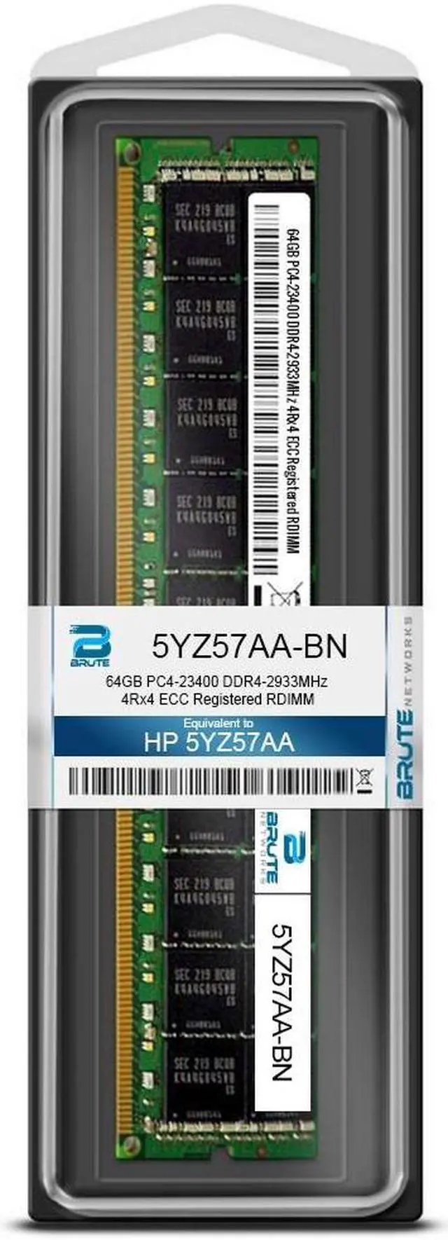 Brute Networks 5YZ57AA-BN is an OEM compatible 64GB PC4-23400 DDR4-2933Mhz 2Rx4 ECC Registered RDIMM, equivalent to HP labeled PN#: 5YZ57AA