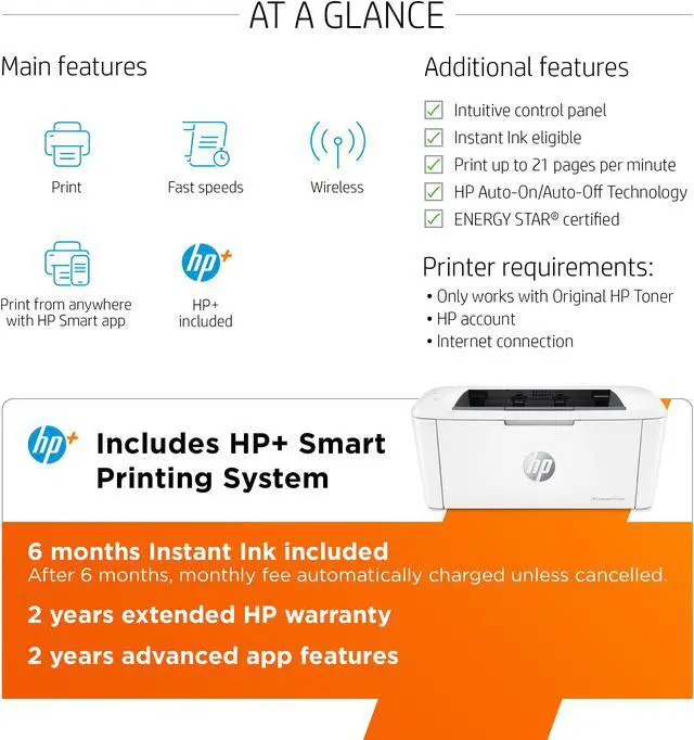 HP LaserJet M110we Wireless Black & White Printer with HP+ and Bonus 6 Free Months of Instant Ink