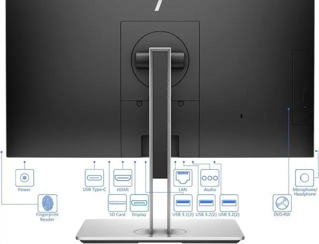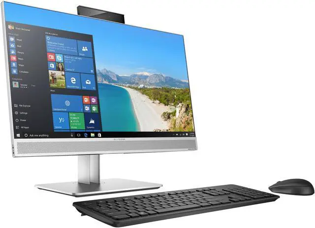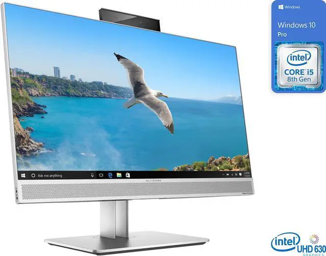 Designed for healthcare and hospital professionals, the HP 23.8" EliteOne 800 G4 All-in-One Desktop Computer delivers an improved user experience with its thin design, powerful processing, multi-faceted security, cable management, and collaboration capabilities. The display can also be cleaned using germicidal wipes. There is a dual-band RFID reader and a FIPS-201 compliant fingerprint reader. The system is powered by an 8th Gen Coffee Lake 3.0 Intel Core i5-8500 six-core processor with integrated Intel UHD Graphics 630. It also has DDR4 RAM, PCIe NVMe SSD storage, an HP 9.5mm slim DVD burner, a 2 MP Full HD webcam, 802.11ac Wi-Fi, Bluetooth 5.0, USB 3.1 Gen 2 Type-C, USB 3.1 Gen 2 Type-A, and USB 3.1 Gen 1 Type-A. An HP USB Business Slim keyboard and a USB optical mouse are included. Windows 10 Pro includes all of the features of Windows 10 Home plus many designed specifically for business users, including Hyper-V virtualization, BitLocker disk encryption, and remote desktop access. Devices will also be able to join domains and the Azure Active Directory, and they can even access a specialized version of the Windows Store featuring custom, company-specific applications.
