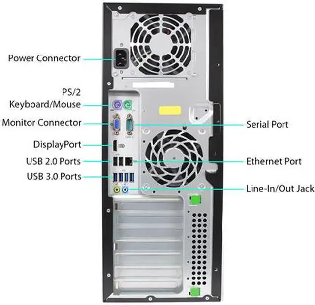 With business needs in mind, the HP 8300 Elite Series Business Desktop PC (part # NE2-0320) has placed line in and line out ports and USB ports up front for convenience, and offers VGA and DisplayPort outputs for dual-monitor set-ups, thus helping you work more productively.