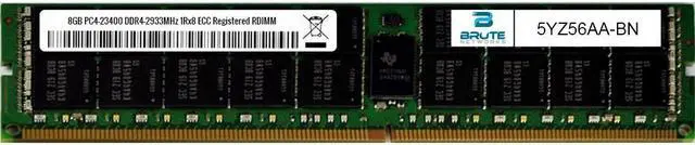 Brute Networks 5YZ56AA-BN is an OEM compatible 8GB PC4-23400 DDR4-2933MHz 1Rx8 ECC Registered RDIMM, equivalent to HP labeled PN#: 5YZ56AA
