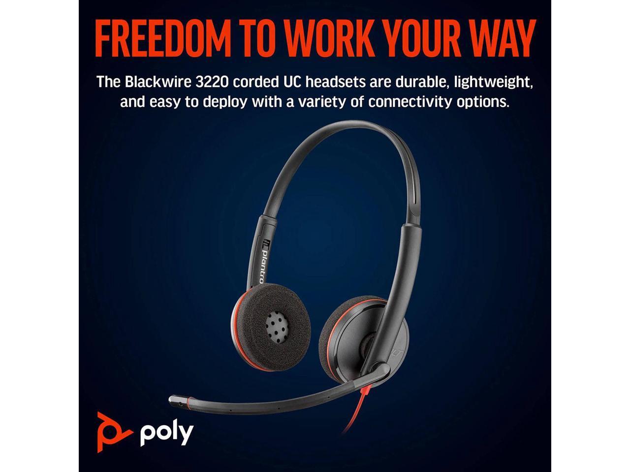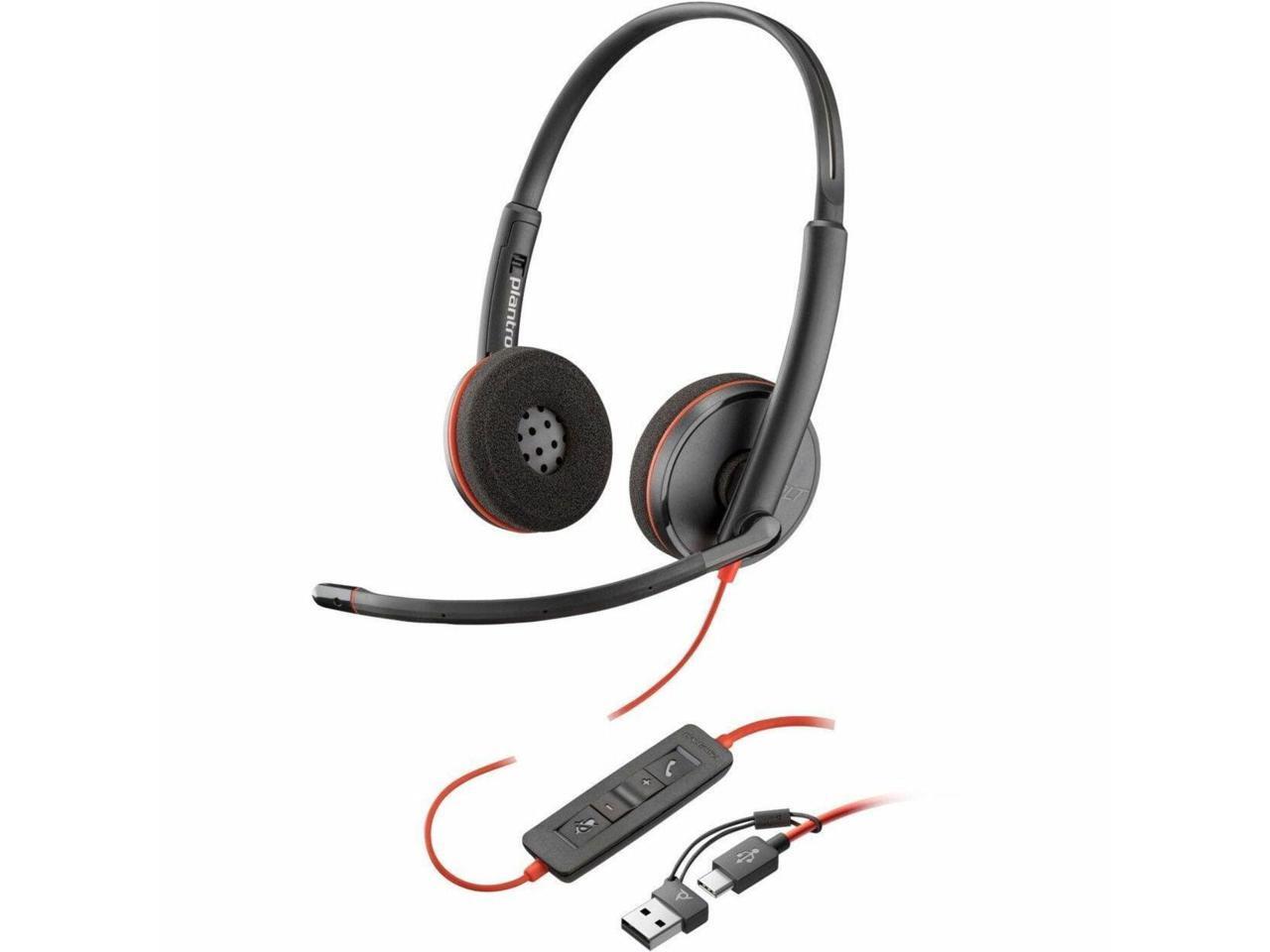 Poly Blackwire 3220 Stereo USB-C Headset + USB-C/A Adapter - Stereo - USB Type C, Mini-phone (3.5mm) - Wired - 32 Ohm - On-ear - Binaural - Ear-cup - 5.20 ft Cable - Omni-directional Microphone - Nois
