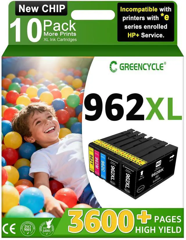 • Advantage: 962xl ink cartridges combo pack. (1)Latest smart chip can display the volume of your ink, so you can decide in advance whether you need to order a new cartridge (2)Professionally produced exceptional ink for producing vibrant colors and long-lasting printouts (3)Each Ink Cartridge is fully tested in the high-tech facility and under strict quality control (4)Easy to install and use, compatible with your printer perfectly.