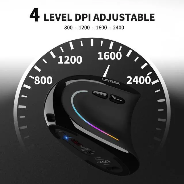 This wireless mouse has 4 levels of DPI adjustable: 800-2400DPI. It is recommended to use 800/1200 for browsing and 1600/2400 for precision. You can adjust the appropriate DPI by pressing the button below the scroll wheel