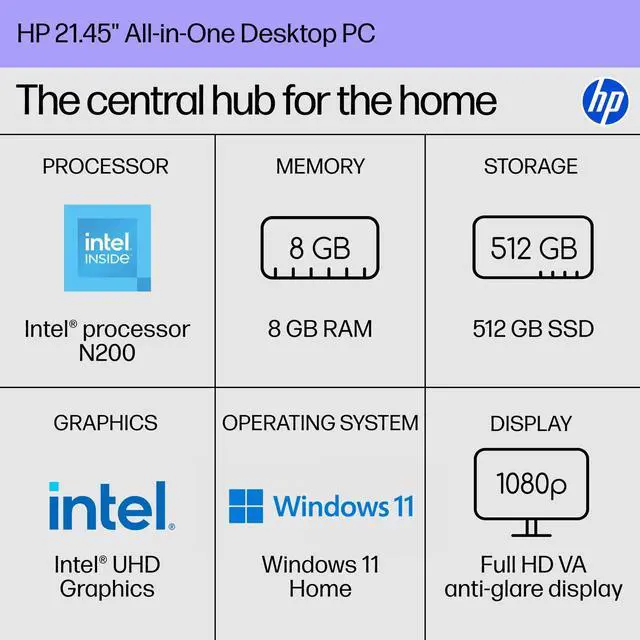HP 22-dg0440 22" AIO Computer N200 8GB 512GB SSD W11H B9KP6AAABA