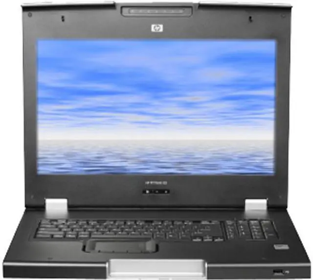 The TFT7600 G2 KVM Console and Monitor combines a full 17.3 inch WXGA+ monitor and keyboard with touch pad in a 1U format with room to mount an HP KVM Switch behind it. The TFT7600 G2 includes a three button touch pad, 4 scroll keys, and Windows shortcut keys. The TFT7600 G2 provides PS2 and USB connectivity and a USB port on the front of the keyboard for USB pass through with compatible KVM switches. The silver color and blue LEDs centered in the front of the product ease unit identification when closed in high density racks.