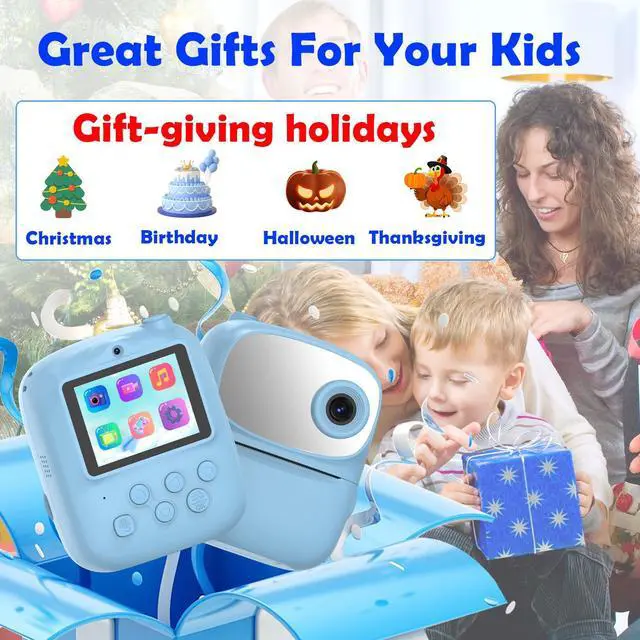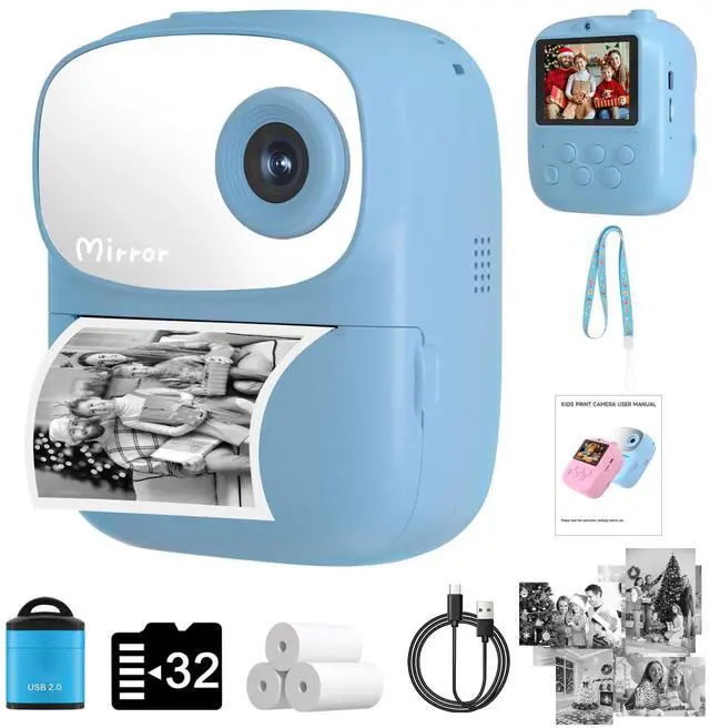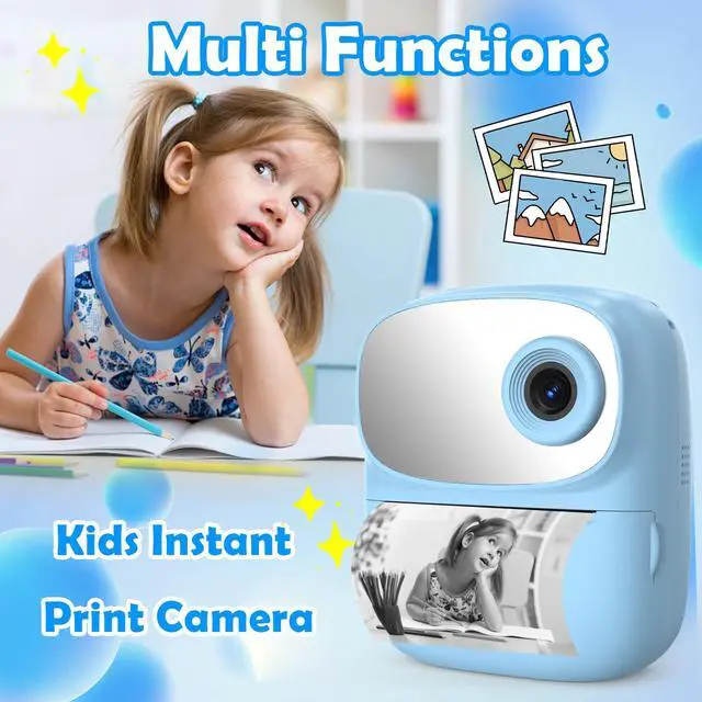 - Combines a digital camera with a built-in photo printer. Capture moments and print physical photos instantly on the go, allowing for immediate sharing and creative play.