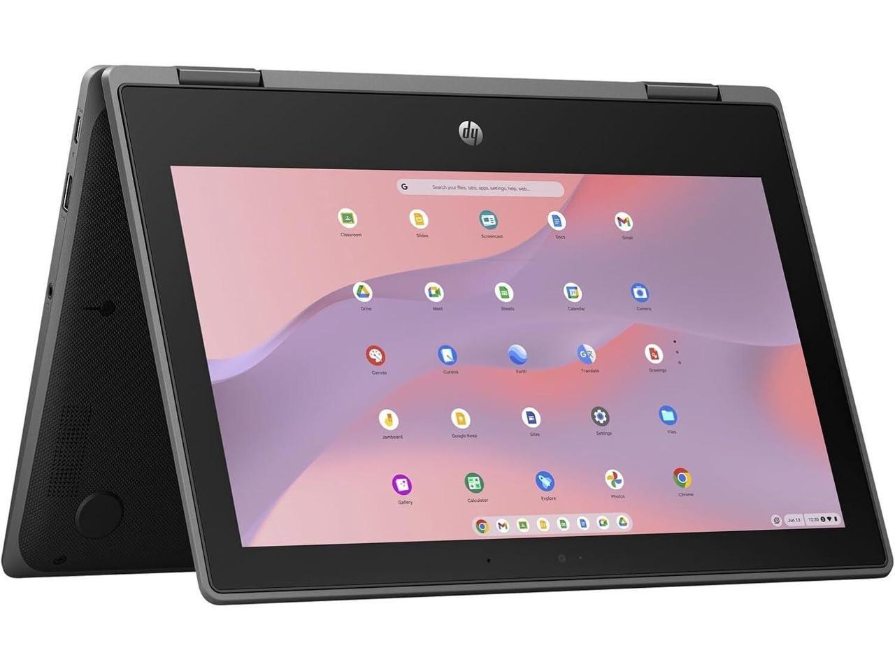 - The HP Fortis x360 Chromebook has a 360° hinge for easy transitions between laptop, tablet, tent, and stand modes. It's perfect for learning, writing, drawing, and viewing videos.