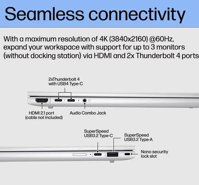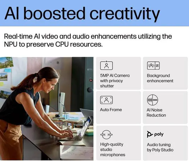 - Security: HP Wolf Security, fingerprint reader, 5MP IR camera with privacy shutter, and MIL-STD-810H durability for enterprise-grade protection.