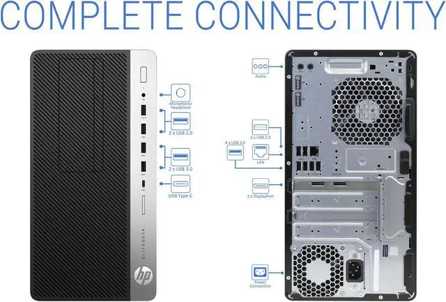 GENERAL INFORMATION Brand: HP Series: EliteDesk Model: 705 G4 Form Factor: Desktop Tower Operating System: Windows 10 Pro PROCESSOR Processor Brand: AMD Processor Type: A10-9700 Number of Cores: 6 Base Frequency: 3.5GH z Turbo Frequency: 3.8GH z L2 Cache: 2 MB MEMORY Memory Capacity: 8GB Memory Type: DDR4 Memory Form Factor: DIMM Memory Speed: 2400 Max Supported Memory: 32 GB STORAGE Drive Configuration: 512GB NVMe SSD (PCIe) + 500GB HDD VIDEO Integrated Graphics: AMD Radeon R7 AUDIO Audio Tech: HD Audio MULTIMEDIA DRIVES Optical Drive: DVD-Writer PORTS & FEATURES Video Ports: 2x DisplayPort Audio Ports: