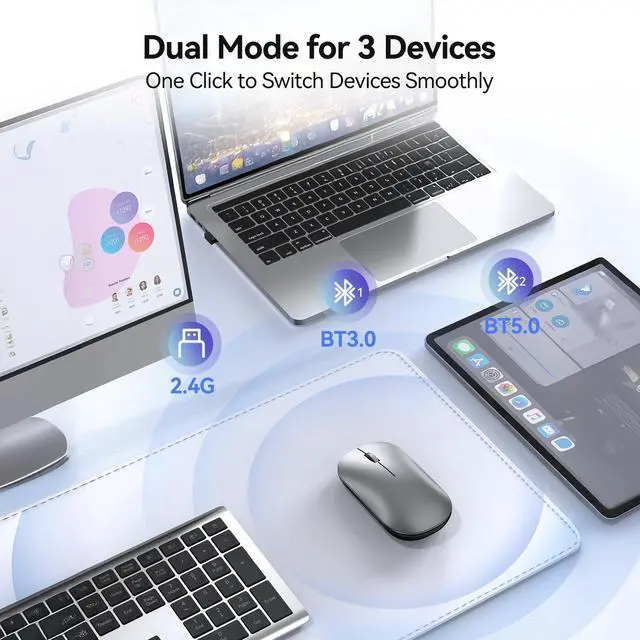 ![Alt view image 5 of 7 - Bluetooth Mouse for MacBook, [ USB + BT5.0 + BT3.0 ] Rechargeable Wireless Mouse, Silent Click, 4-Level DPI, Portable Computer Mice for MacBook/MacBook Air/Pro/iPad/Laptop/Android/Windows](https://c1.neweggimages.com/productimage/nb640/C6FXD26042404NHFQA8.jpg)