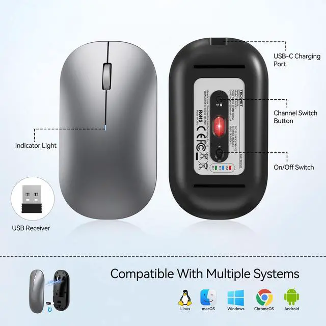 ![Alt view image 6 of 7 - Bluetooth Mouse for MacBook, [ USB + BT5.0 + BT3.0 ] Rechargeable Wireless Mouse, Silent Click, 4-Level DPI, Portable Computer Mice for MacBook/MacBook Air/Pro/iPad/Laptop/Android/Windows](https://c1.neweggimages.com/productimage/nb640/C6FXD26042404NHKHE3.jpg)
