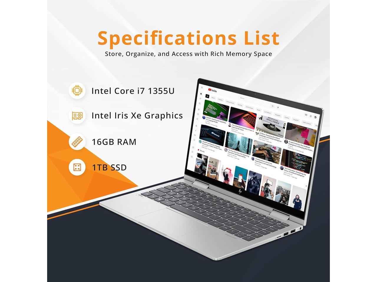 HP Envy x360 2-in-1 14" FHD Touchscreen Laptop, Intel Core i7-1355U, 16GB RAM, 1TB SSD, Backlit KB, 5MP Camera, Fingerprint Reader, Intel Iris Xe Graphics, Wi-Fi 6E, Win 11, Silver, 32GB USB Card