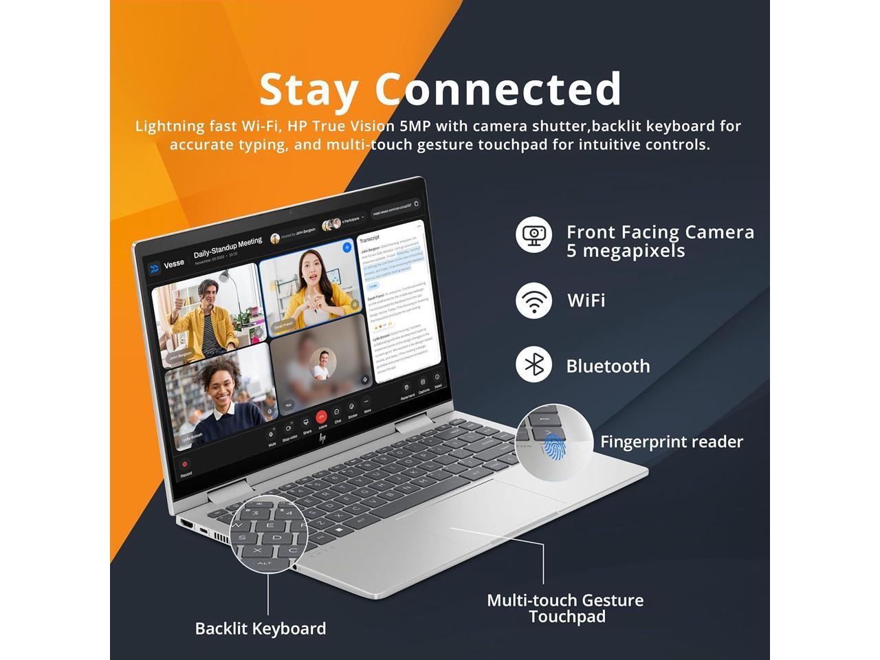 - Backlit KeyboardEnjoy comfortable and accurate typing, even in dim light.HP True Vision 5MP with camera shutterVideo chat with your entire team in stunning details thanks to the 88-degree wide-angle field of view. Infrared sensor assists safe log-in through face recognition.