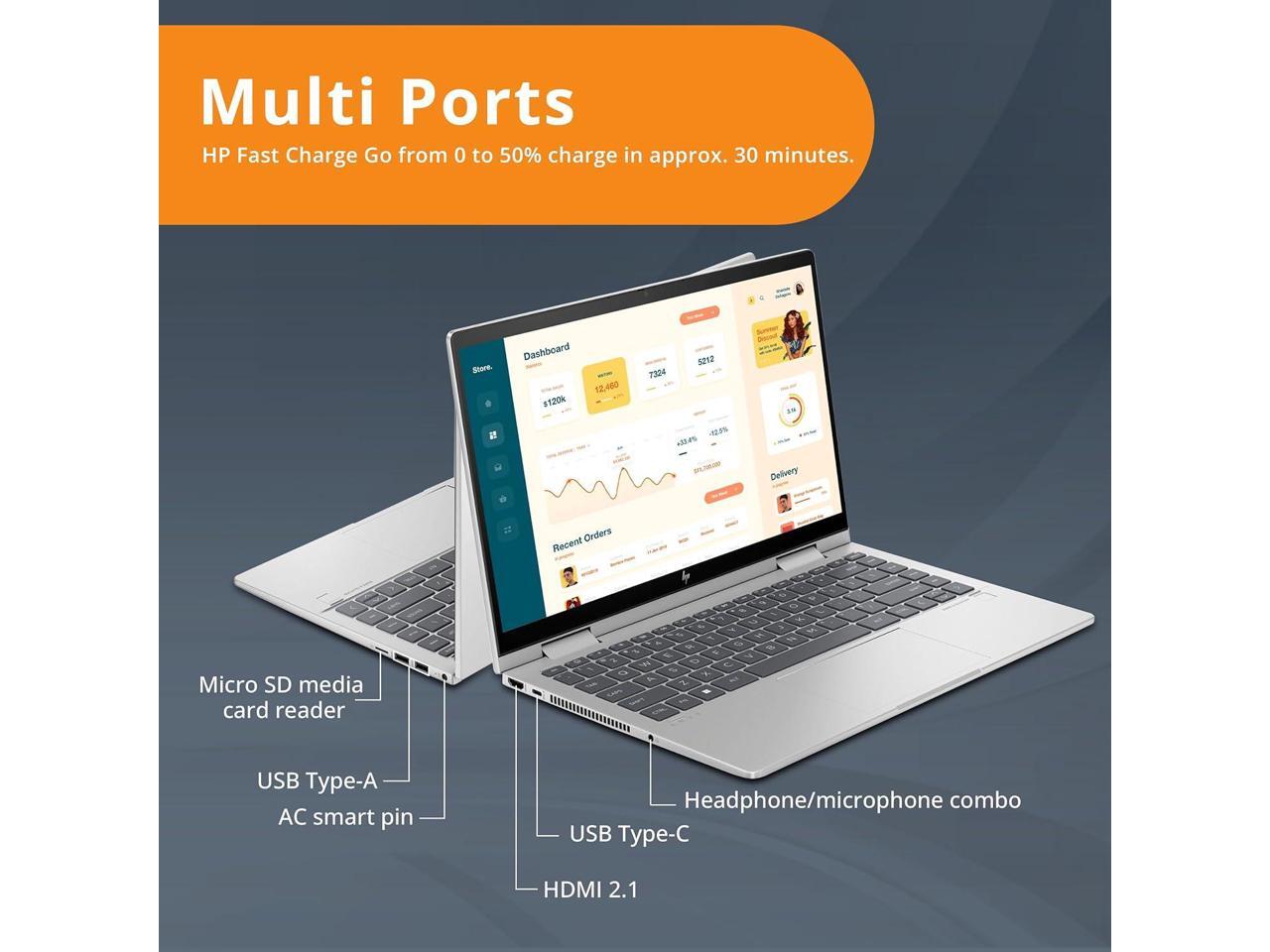 HP Envy x360 2-in-1 14" FHD Touchscreen Laptop, Intel Core i7-1355U, 16GB RAM, 2TB SSD, Backlit KB, 5MP Camera, Fingerprint Reader, Intel Iris Xe Graphics, Wi-Fi 6E, Win 11, Silver, 32GB USB Card