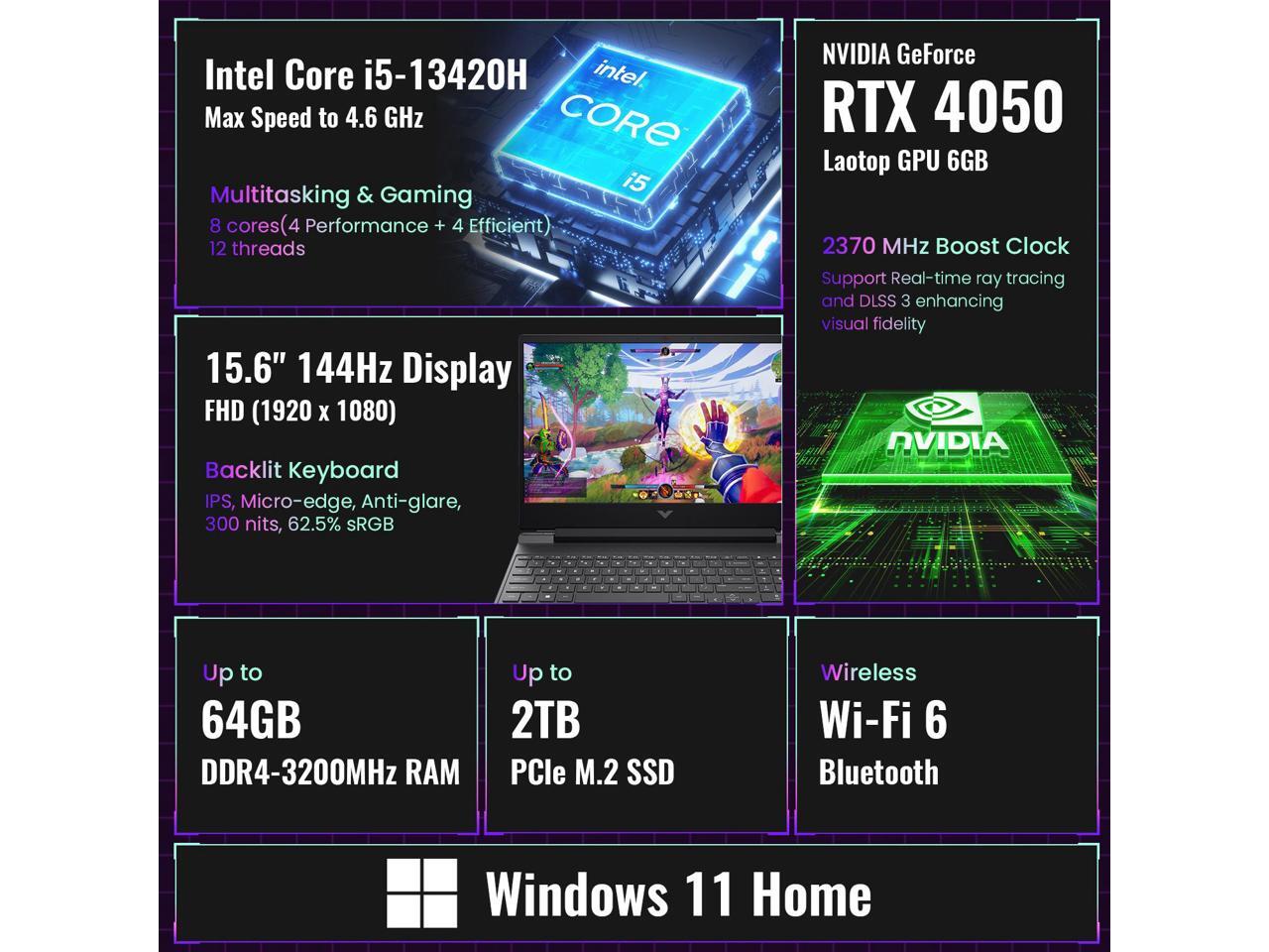 HP Victus 15 High FPS Gaming Laptop, Intel Core i5-13420H(Beats Intel i7-12650H), NVIDIA GeForce RTX 4050, 15.6 144Hz FHD, 32GB RAM, 1TB SSD, Backlit KB, Wi-Fi 6, HD Camera, Windows 11 Home, Silver