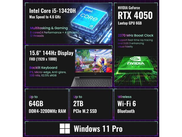 HP Victus 15 High FPS Gaming Laptop, Intel Core i5-13420H(Beats Intel i7-12650H), NVIDIA GeForce RTX 4050, 15.6 144Hz FHD, 32GB RAM, 1TB SSD, Backlit KB, Wi-Fi 6, HD Camera, Windows 11 Pro, Silver