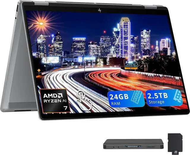 HP OmniBook X Flip 14" 14" 2K Touch-Screen 2-in-1 Laptop, AMD Ryzen AI 7 350, 24GB LPDDR5X, 2.5TB (2TB SSD+512GB Docking Station Set), AMD Radeon 860M, Backlit Keyboard, Wi-Fi 6E, Win 11 Home, Silver