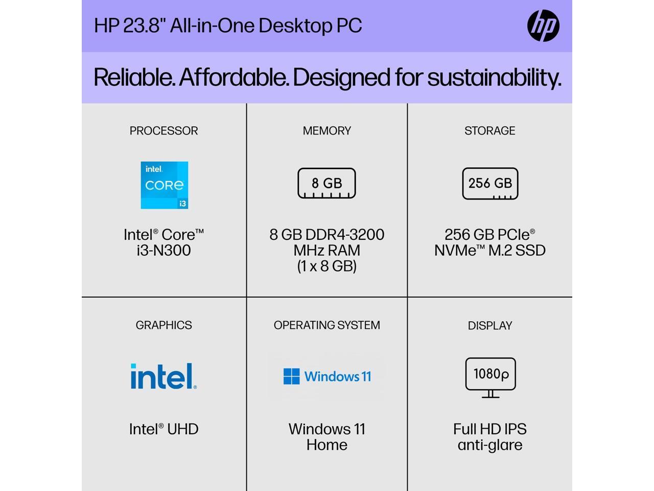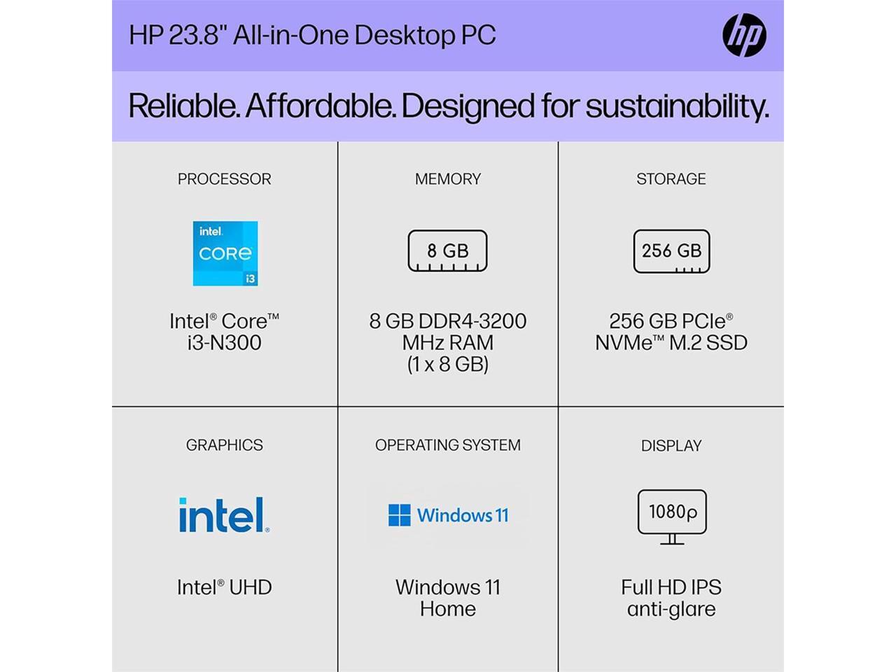 HP 24" AIO Desktop Computer i3-N300 8GB 256GB SSD W11 7G9S5AA