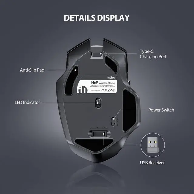 Easy, set up INPHIC wireless mouse in seconds. Convenience, the USB receiver is stored in the back of the mouse, not separate storage.