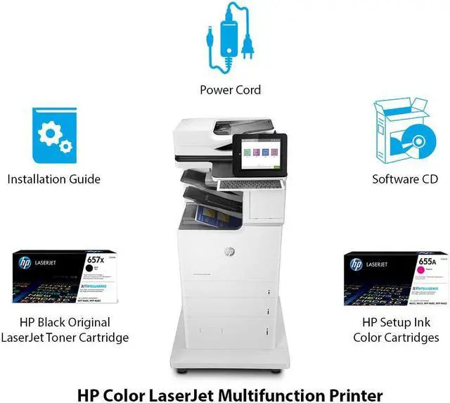 HP Color LaserJet Enterprise Flow MFP M682z Brand New Includes One Year Warranty Product # J8A17A#BGJ The HP LaserJet Enterprise Flow MFP M682Z is a color printer that features upto 60 page-per-minute print speed with first print-out times as fast as 5.9 seconds. The printer's recommended monthly duty cycle up to 120000 pages is designed for offices and individuals with moderate printing needs. This printer features 2 standard and 3 maximum paper tarys. The 1200 x 1200 resolution provides high quality output on a wide range of media including all types paper, envelopes, labels and transparencies.