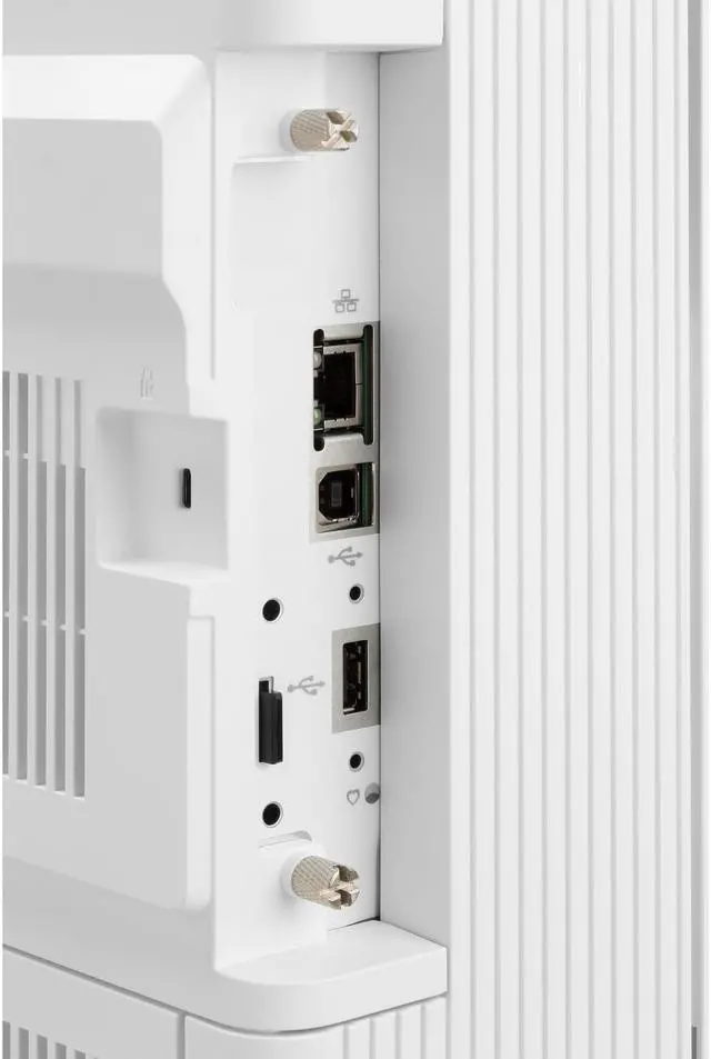 The printer includes several connectivity options designed to make it easy to print anywhere. In addition to a high speed USB port, the printer come with built-in Ethernet.