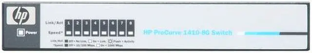 HP V1410 Series switches are unmanaged Gigabit and Fast Ethernet switches designed for small and midsize businesses looking for entry-level, low-cost networking solutions with comprehensive lifetime warranty. The HP V1410 Switch Series consists of seven models with flexible mounting options that allow customers to choose the best switch to meet their network switching needs. All models have QoS support and IEEE 802.Triple flow control features ensure maximum data efficiency. Simplified plug and play operation is enabled by features like Auto-MDIX and Auto speed negotiation. HP has innovated and combined the latest advances in silicon technology to provide some of the most power efficient switches: 16- and 24-port Fast Ethernet models are the industry's first IEEE 802.3az compliant unmanaged Fast Ethernet switches. The available green features along with HP's Lifetime Warranty make the HP V1410 Switch Series ideal products for customers seeking low cost and reliable networking solutions.