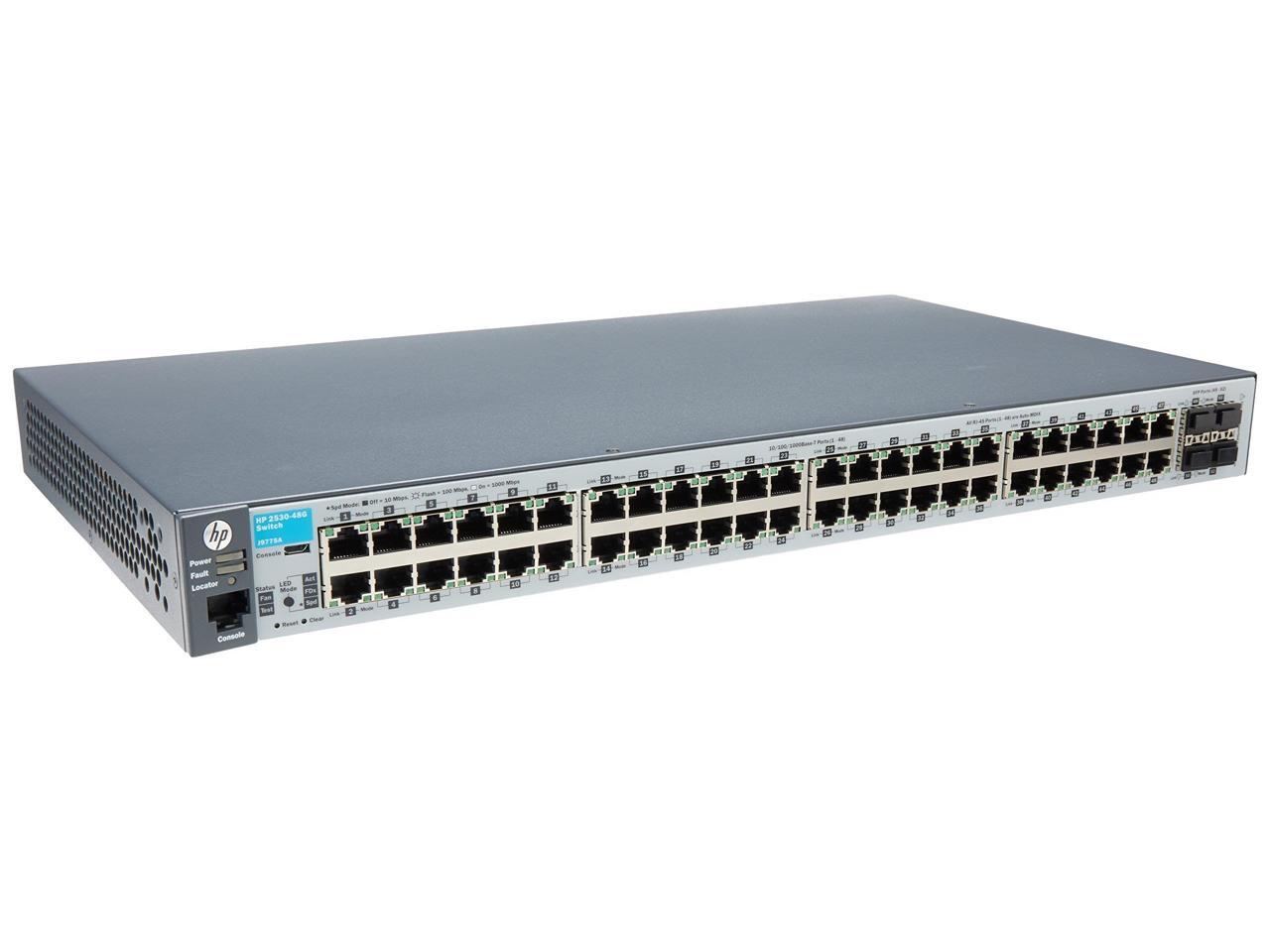 HP 2530-48G Switch - 48 Ports - Manageable - 48 x RJ-45 - 4 x Expansion Slots - 10/100/1000Base-T - Rack-mountable, Wall Mountable, Desktop
