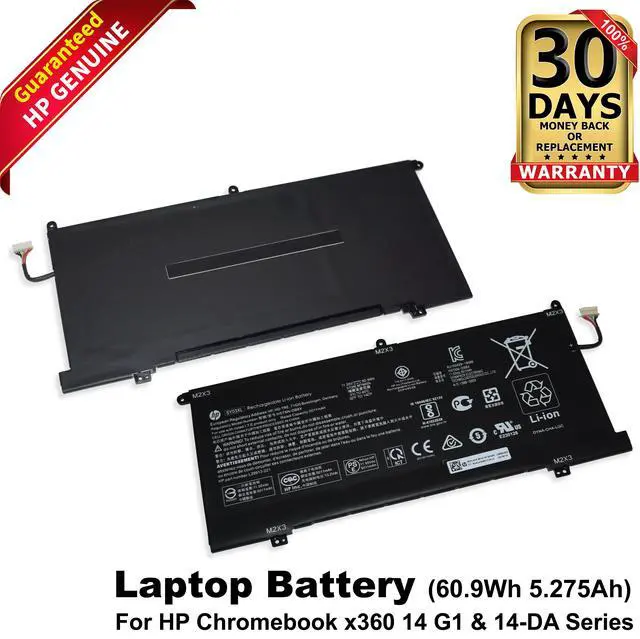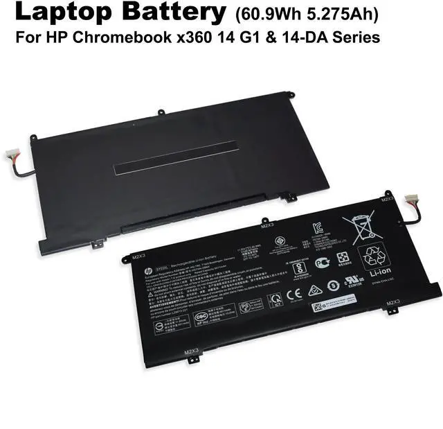 The HP Chromebook x360 14 G1 & 14-DA 60.9Wh 5.275Ah Laptop Battery is a genuine OEM replacement designed to deliver optimal performance and long-lasting power for your Chromebook. Engineered with advanced lithium-ion technology, this battery ensures consistent, efficient energy output to keep your device running for hours. With a robust 60.9Wh capacity, it supports productivity, streaming, and multitasking without constant charging interruptions. Its precise fit for the HP Chromebook x360 14 G1 and 14-DA series guarantees hassle-free installation and full compatibility, restoring your laptops mobility and reliability to factory standards.