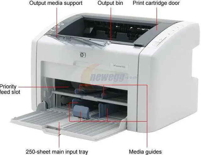 The sleek, grey-and-black HP LaserJet 1022 looks smart with its input tray, dustcover and simple two-button control panel. The single-piece toner and developer cartridge slides into place under the top cover in a very easy obvious and positive way. It could hardly be easier to fit. Save valuable workspace with one of the smallest laser printers available. The HP LaserJet 1022 Printer fits into just the right space to satisfy your professional-quality business printing needs.