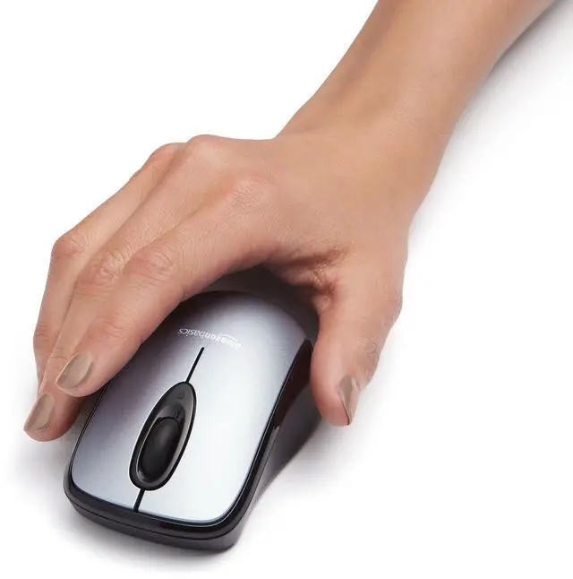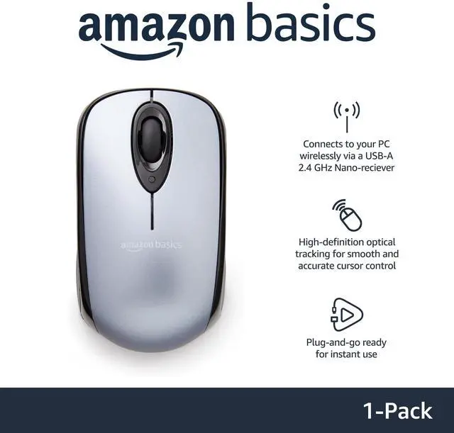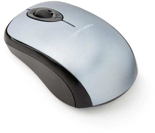 Wireless mouse in Silver for easily navigating a computer interface; click, scroll, and more