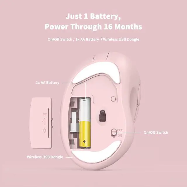Only one AA battery needed, it can work up to 16 months thanks to auto-sleep power saving mode and an/off switch button. Note: The battery life may vary based on use and computing conditions.