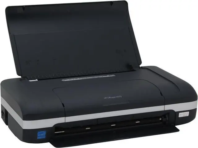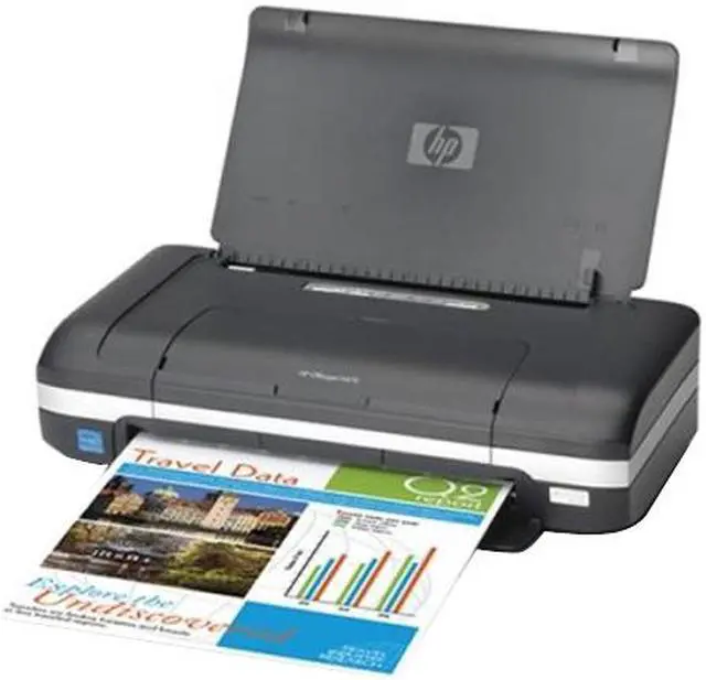 When you need full-sized print capabilities on the go, you'll thank your lucky stars for the OfficeJet H470B! This color inkjet printer gives you crisp documents and photos in 1200 dpi clarity, at up to 22 ppm. At just 4.5 pounds, the H470B is easy to bring along, and its small form lets you set it up in even the tightest quarters. Connect 2 computers using the USB ports, or build a wireless network on the spot with an optional WiFi or Bluetooth adaptor from HP.