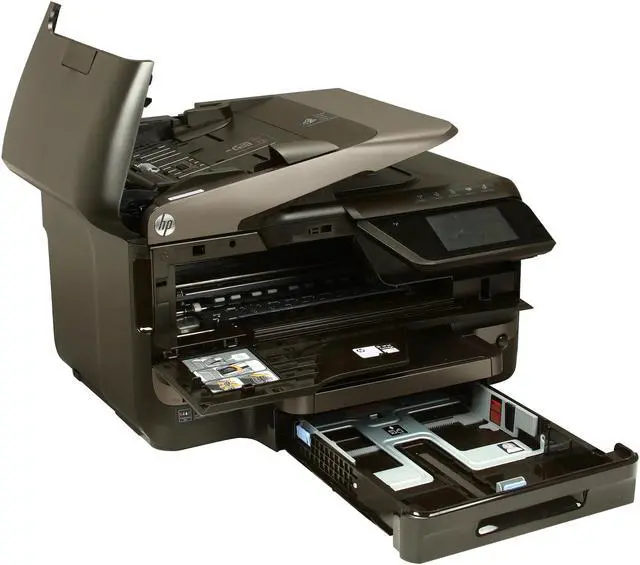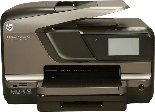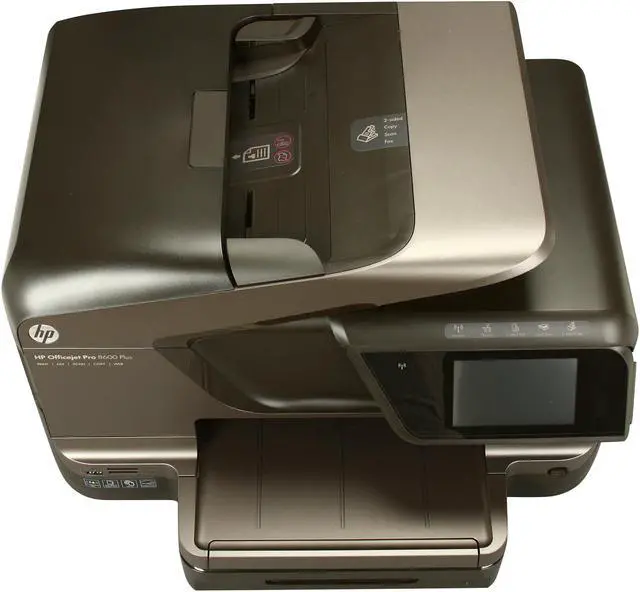 Officejet Pro 8600 Plus e-All-in-One Printer produces professional-color documents for up to 50 percent lower cost per page than lasers. Printer generates 20 black/white pages per minute with 1200 x 600 dpi and 16 color pages per minute with up to 4800 x 1200 optimized dpi. Print from virtually anywhere, and from a variety of mobile devices, using HP ePrint. Use the intuitive, 4.3" touch screen to access business apps, plus quickly print and store files. Easily view and print photos from a USB drive and memory cards. Stay connected on a wireless or wired network. Create flawless copies with CopySmart solutions and easily create and print a one-sided copy of a two-sided ID. You can also send quick faxes, scan up to legal-size documents to a PC or email, and more. Printer also features duplex printing, borderless printing, 250-sheet input tray, 50-sheet automatic document feeder, 360 MHz processor, and USB 2.0 connectivity. Energy Star qualified.