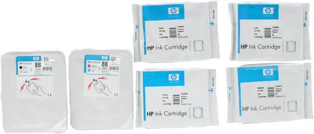 | Cartridges Compatible | HP 88 Black Ink Cartridge, 20.5 ml C9385A HP 88 Cyan Ink Cartridge, 9 ml C9386A HP 88 Magenta Ink Cartridge, 9 ml C9387A HP 88 Yellow Ink Cartridge, 9 ml C9388A HP 88XL Large Black Ink Cartridge, 58.5 ml C9396A HP 88XL Large Cyan Ink Cartridge, 17.0 ml C9391A HP 88XL Large Magenta Ink Cartridge, 17.0 ml C9392A HP 88XL Large Yellow Ink Cartridge, 17.0 ml C9393A HP 88 Black and Yellow Printhead C9381A HP 88 Magenta and Cyan Printhead C9382A |