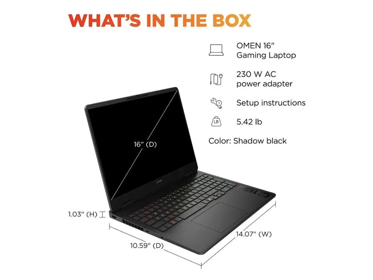 - 16.0" IPS WUXGA (1920x1200) 144Hz Display; 230W PSU, No, 4-Cell 67 WHr Battery; Shadow Black Color
