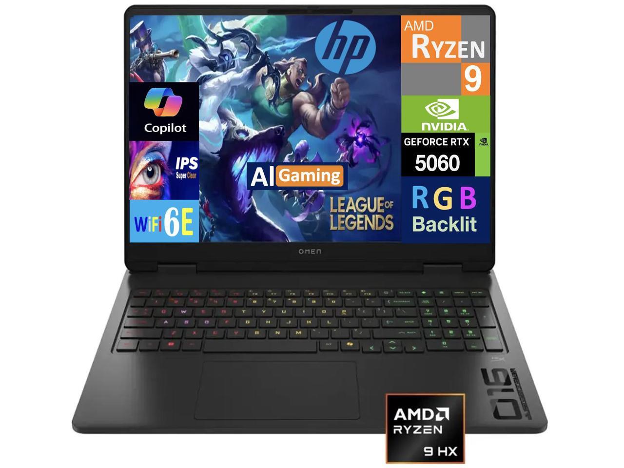 HP OMEN AI Gaming Laptop 16.0" 144Hz IPS WUXGA Display (AMD Ryzen 9 8940HX, NVIDIA GeForce RTX 5060 8GB, 32GB DDR5, 2TB PCIe SSD, 3-Zone RGB KB, WiFi 6E, Webcam, Bluetooth 5.4, Win 11 Home)