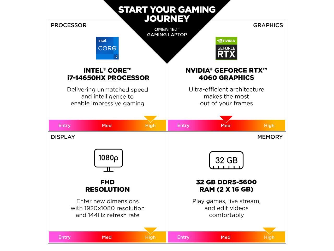HP OMEN Gaming Laptop Intel Core i7-14650HX 2.20 GHz NVIDIA GeForce RTX 4060 32GB DDR5 RAM 1TB NVMe SSD 16.1" Windows 11 Home 16-AE0073CL