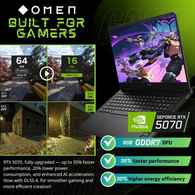 Graphics: The GeForce RTX 5070 graphics card, 8GB GDDR7 VRAM. A game changer for gamers and creators. AI-enhanced DLSS 4 with Multi Frame Generation has unprecedented speed for your creative pursuits