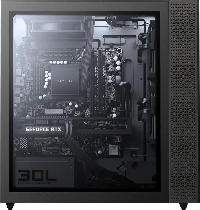 Behold your new best friend, your partner in play, your compadre in competition, the OMEN 30L Gaming Desktop PC packs an AMD Ryzen processor with a dazzling NVIDIA graphics card, so you can play on your level and look good while you're doing it. Sure, it's what's inside that counts, but it's what's outside that gets the looks. With tempered glass front and side panels, a full-metal frame, and complete RGB control, we made this PC for people who know that style points count on the final scoreboard of life. Plug in your external storage with this Superspeed USB Type-C port, featuring 5Gbps signaling data rate. And its reversible, so you never have to worry about plugging in upside down. Stay connected to Wi-Fi and to Bluetooth accessories with wireless technology.