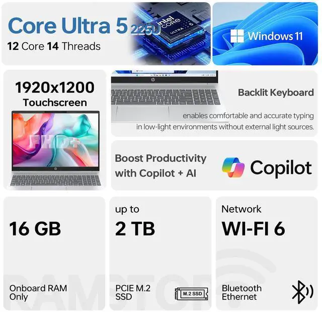 CPU: Intel Core Ultra 5 225U Processor (12 Cores, 14 Threads, 12MB L3 Cache, Base Speed: 1.30 GHz, Turbo Speed: 4.80 GHz)