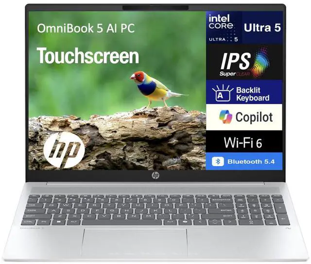 Model: HP OmniBook 5Form/Style: StandardProcessor: 15th Gen Ultra 5-225U 1.50GHz Processor (upto 4.8 GHz, 12MB Cache, 12-Cores, 14-Threads, 2 Performance-cores)Memory: 16GB OnBoard LPDDR5X RAMGraphics: Intel Graphics Integrated Graphics, Storage: 1TB PCIe SSD (Solid State Drive)Operating System: Windows 11 Home-64Display: 16.0" IPS WUXGA (1920x1200) 60Hz 16:10 Touchscreen DisplayConnectivity: 802.11ax Wifi, Bluetooth 5.4, Ports/Slots:, HDMI, 2 USB 3.2 Type-C, Headphone/Microphone Combo JackInput/Output: Webcam, Grey, Backlit KB Standard Keyboard, Battery: 65W PSU, Type-C Power-In, 3-Cell 57 WHr BatteryOther Features, Color: Glacier SilverWeight: 3.8lbProduct Dimensions (WxLxH): 10.15 IN x 14.15 IN x 1 IN