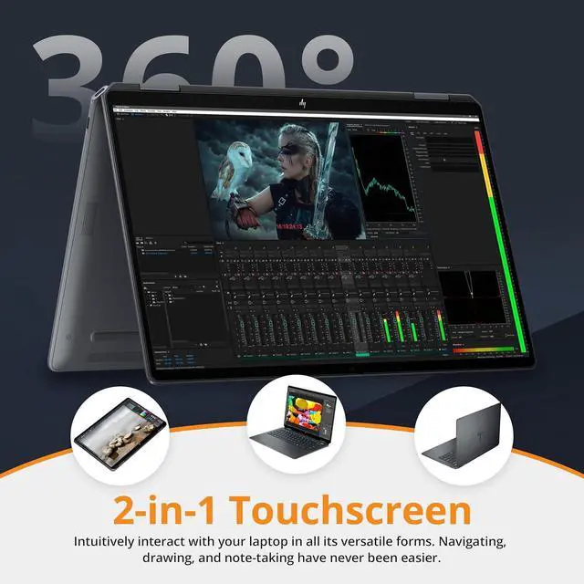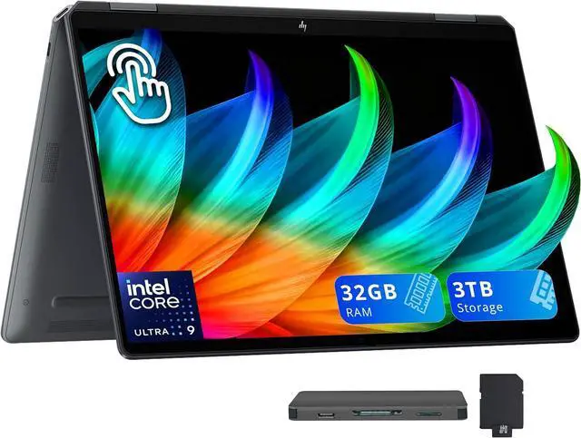 The HP OmniBook Flip 14" 3K 2-in-1 Touchscreen Laptop delivers elite performance with the Intel Core Ultra 9 288V processor, smooth visuals powered by Intel Arc 140V Graphics, and added convenience with a backlit keyboard and fingerprint reader.