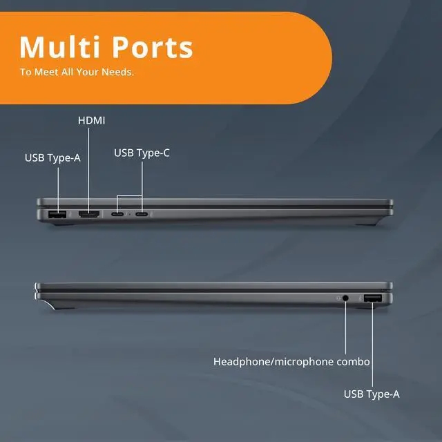 Windows 11 Pro: 14.02" x 9.67" x 0.61", 4.15 lbs. Ports: 2x USB-C, 2x USB-A, 1x HDMI, 1x Headphone /microphone combo jack. Wi-Fi 6E + Bluetooth 5.3. Bonus Docking Station Set: 1x 7-in-1 Docking Station w/ 1TB Storage, 1x 32GB MicroSD Card w/ Adapter, 1x Type-C Data Cable, 1x 3-in-1 Charging Cable, 1x Suede Cleaning Cloth.