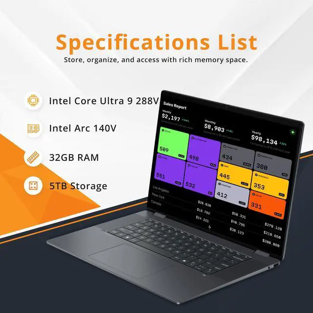 Intel Core Ultra 9 288V Processor: Delivers exceptional single-core performance and groundbreaking energy efficiency, enabling all-day battery life without compromising on speed.