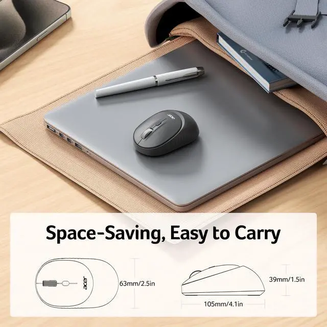 Left & Right Hand Equally ComfortableThe laptop mouse wireless features a symmetrical and slim design that ensures a comfortable, natural grip for both right- and left-handed users, offering universal adaptability for broader user groups. Its compact size perfect travel companion for work or play.