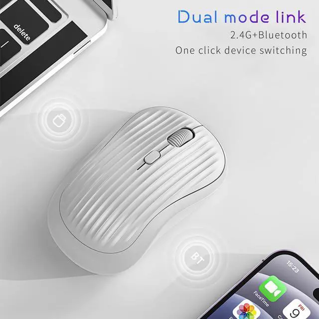 The ONE-UP wireless mouse supports 2.4G wireless and Bluetooth dual-mode connection, allowing simultaneous connection to 2 devices (2.4G + BT) with easy switching. It features a high-quality rechargeable lithium battery with a Type-C charging design, providing long battery life without the need for frequent battery replacements. The DPI can be switched between 800/1200/1600 to meet the needs of different usage scenarios. The high-quality silent buttons ensure quiet clicks, reducing disturbances. The ergonomic design offers a comfortable grip, preventing fatigue even after long periods of use. Its compact and portable design makes it an ideal companion for both office and travel. The stylish appearance perfectly matches various laptops, desktop computers, and other electronic devices. The built-in power switch design effectively saves battery power, extending usage time. Whether working from home or traveling on business, the ONE-UP wireless mouse will be your powerful assistant, providing an efficient and comfortable user experience. It is compatible with Windows XP/Vista/7/8/10/11 and Mac OS X 10.4 or later. The package includes the ONE-UP wireless mouse, USB Nano receiver, Type-C charging cable, and user manual.