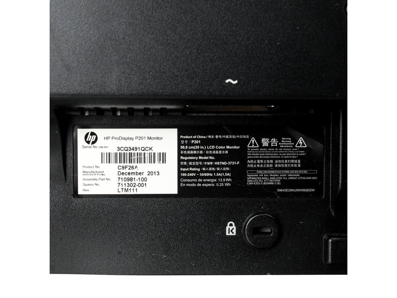 HP P201 20" 1600x900 Widescreen LED Backlit Monitor VGA DVI Grade B